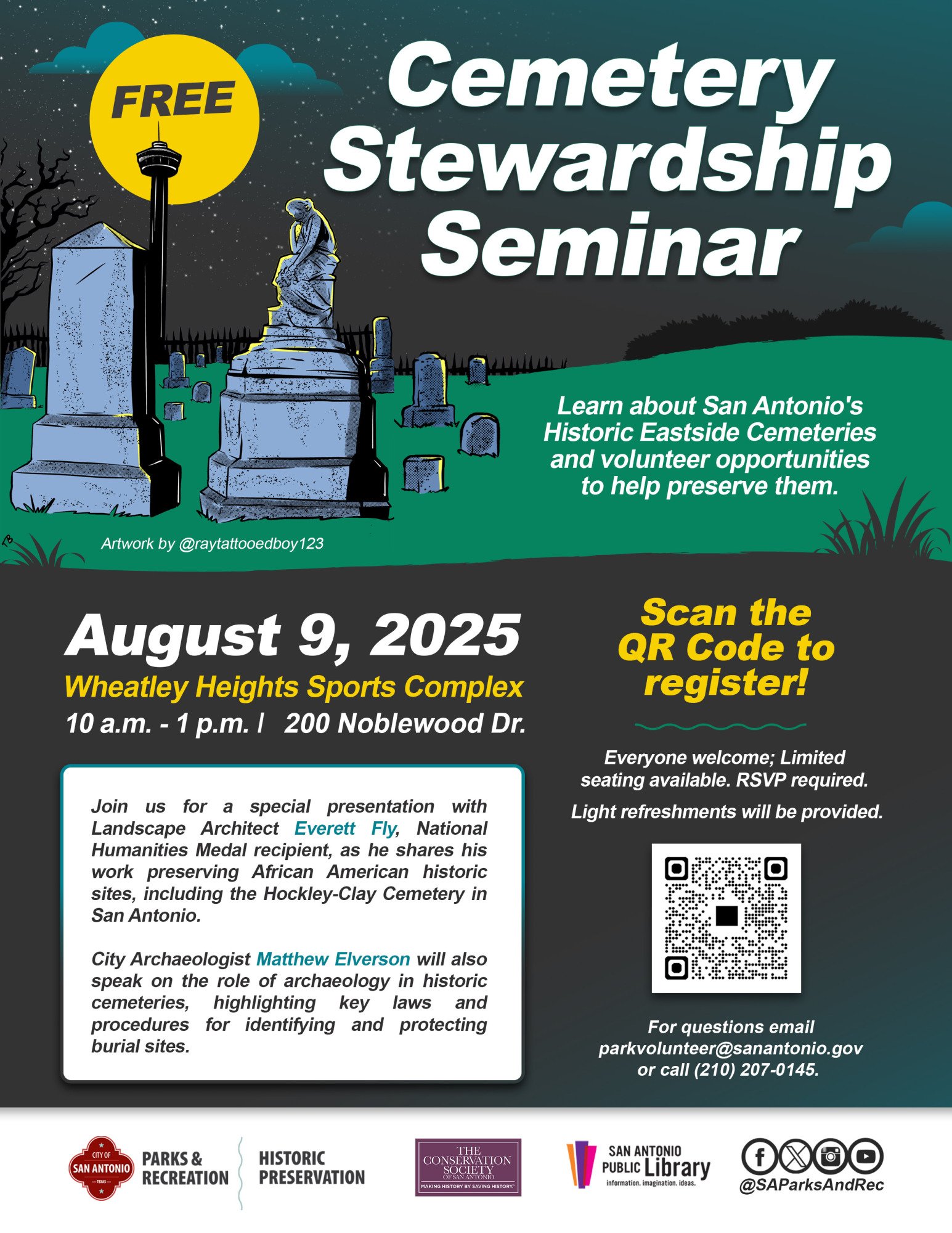 We are honored to welcome Landscape Architect, FASLA/Architect Everett Fly as our keynote speaker. Mr. Fly is a nationally recognized preservationist and the recipient of the National Humanities Medal, awarded by President Barack Obama in 2014 for his groundbreaking work preserving the integrity of African American historic sites. He will share insights from his decades of research and cultural landscape work, including his contributions to historic cemetery preservation in San Antonio and the 2022 designation of the Hockley-Clay Cemetery as a Cultural Heritage District.