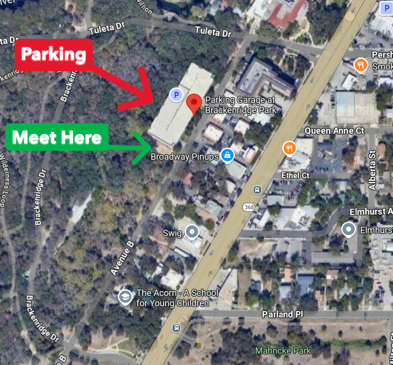 Meeting location: Meet next to the Brackenridge Parking Garage on Avenue B. Google map here.