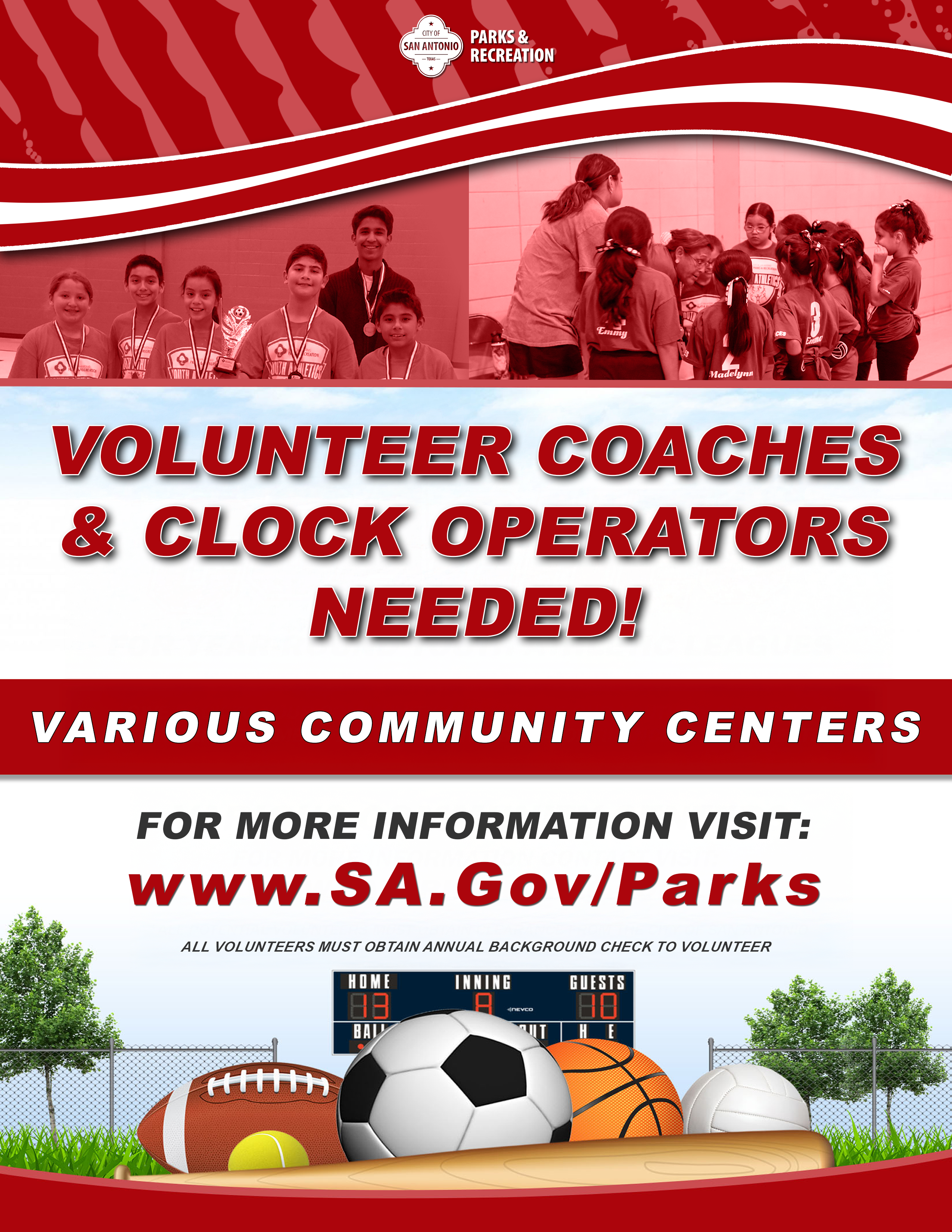 Do you enjoy working with kids and supporting your community? Parks and Recreation is looking for volunteers to assist with youth sports leagues—including basketball, T-ball, kickball, soccer, and volleyball at community centers across San Antonio.
